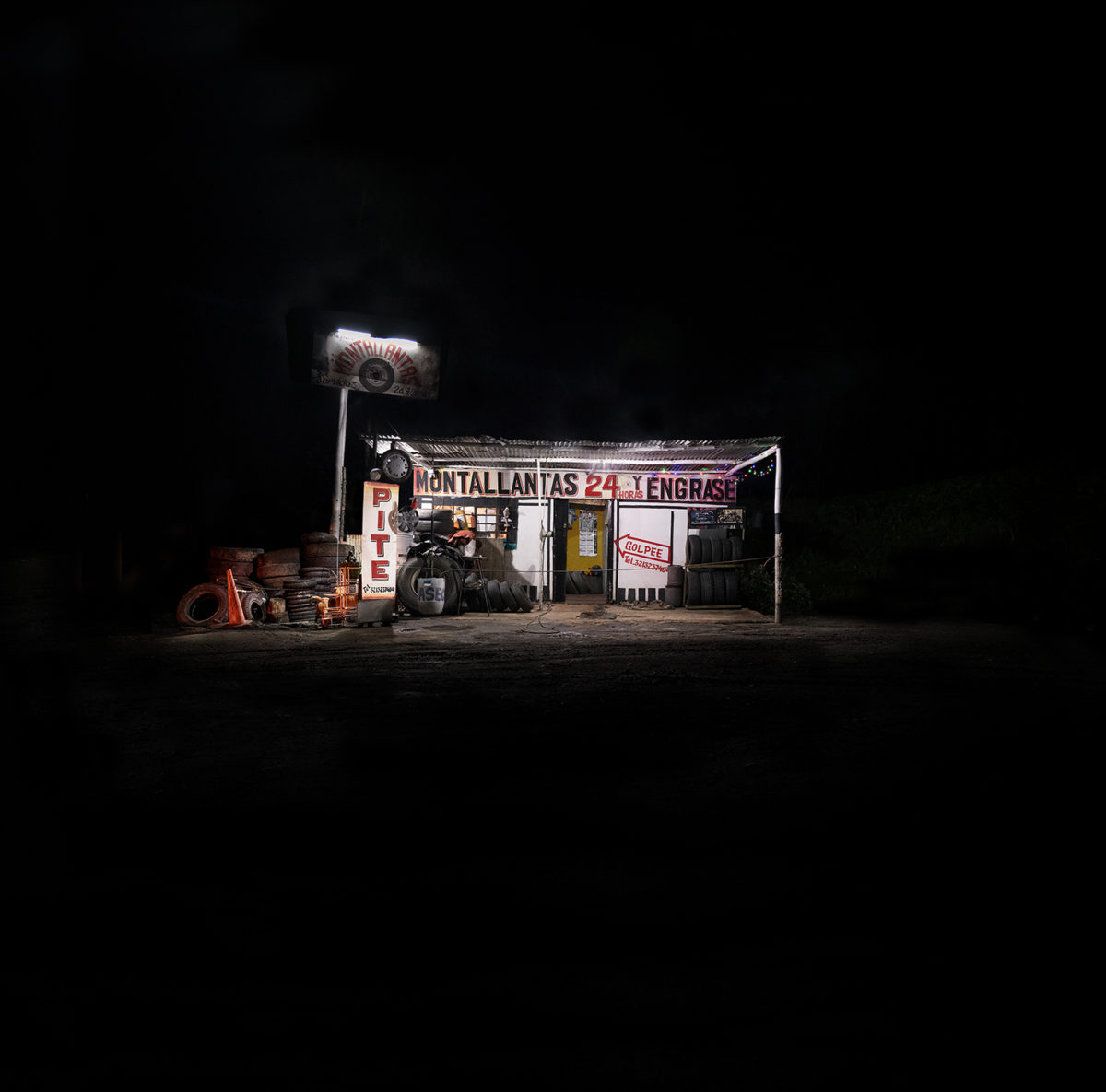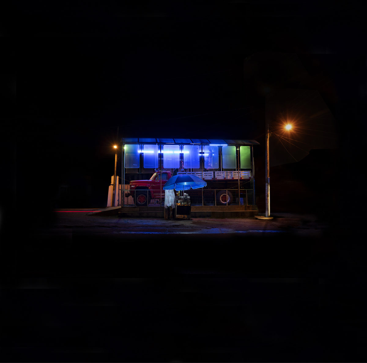 ‘In Vestiges, time and the beauty of the night are intertwined closely together. Each photo reveals a different structure lit through colourful flashes on desolate Colombian roads, creating an urban landscape in the darkness of the night. A concern to discover who inhabits these lonely territories is a question in the photographer’s mind. Beyond documenting these somewhat sculptural locations these photographs depict moments of roads that appear and disappear in vestige of the night.’